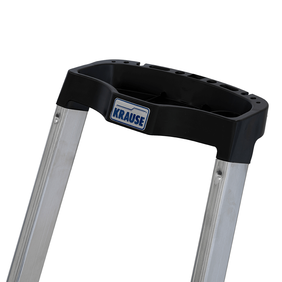 Die komfortable und leichte Aluminium-Stehleiter mit extra hohem Sciherheitsbügel und vielen praktischen Ablagemöglichkeiten.