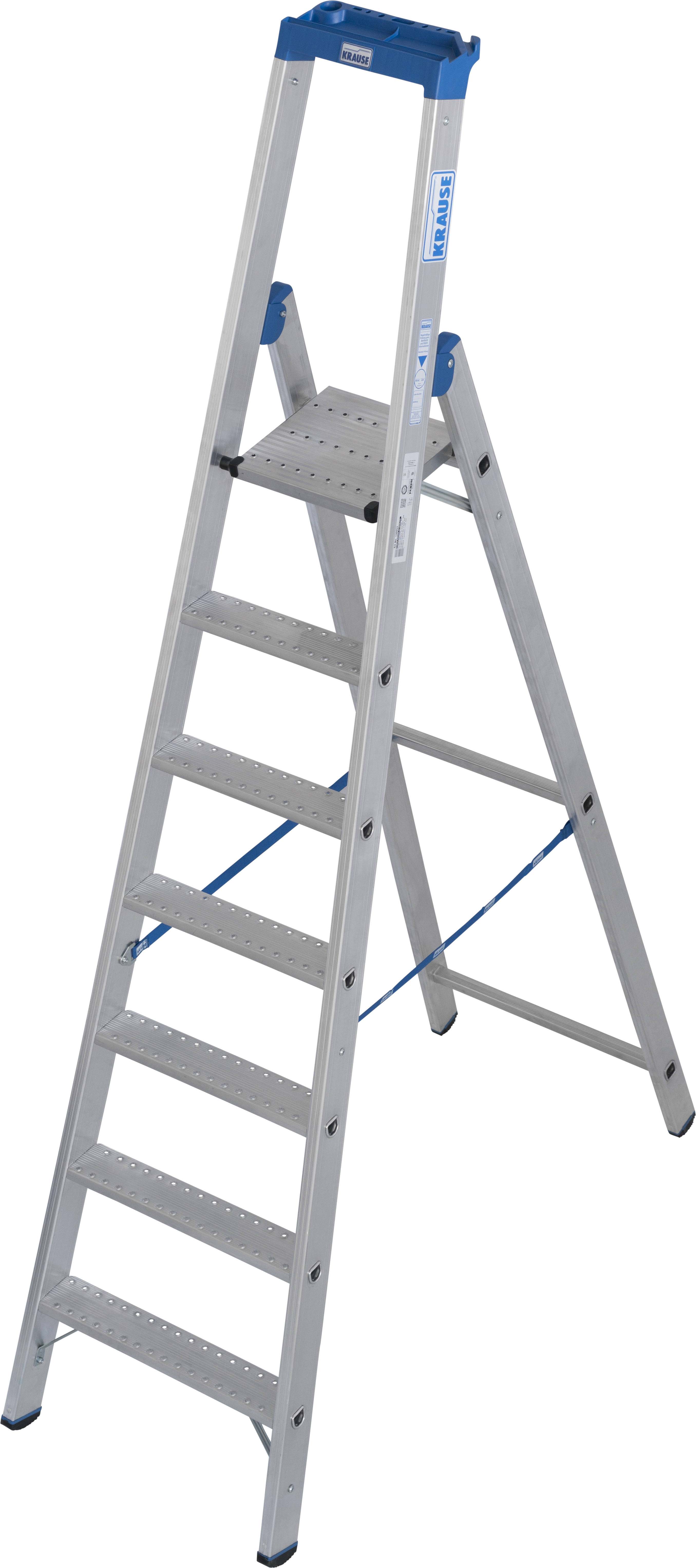 - 260 x 270mm große Alu-Sicherheits-Plattform mit rutschhemmender R13-Profilierung und beidseitigem Plattformheber