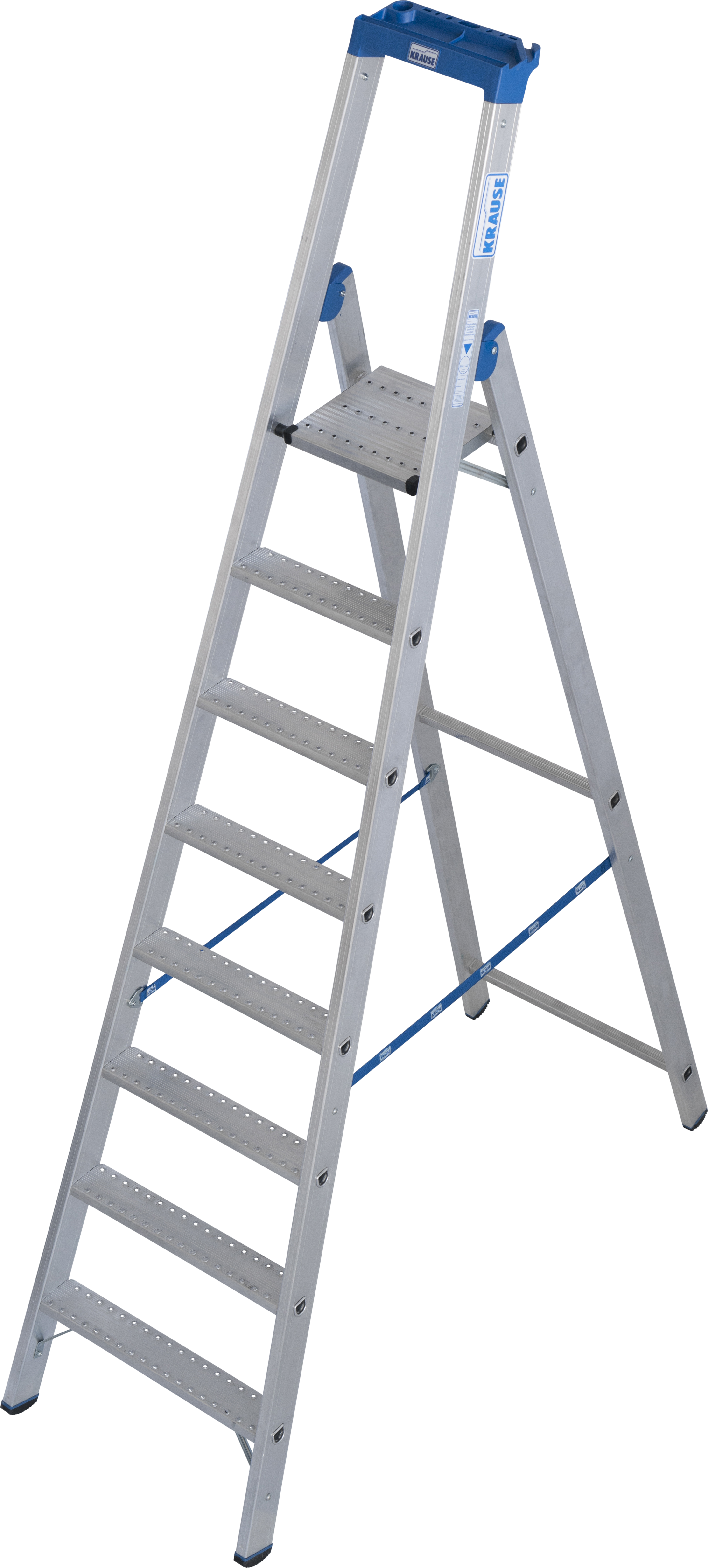 Die robuste Aluminium-Stehleiter mit Multifunktionsschale und Eimerhaken für den professionellen Einsatz - vor allem an rutschigen, schmierigen Arbeitsplätzen.
