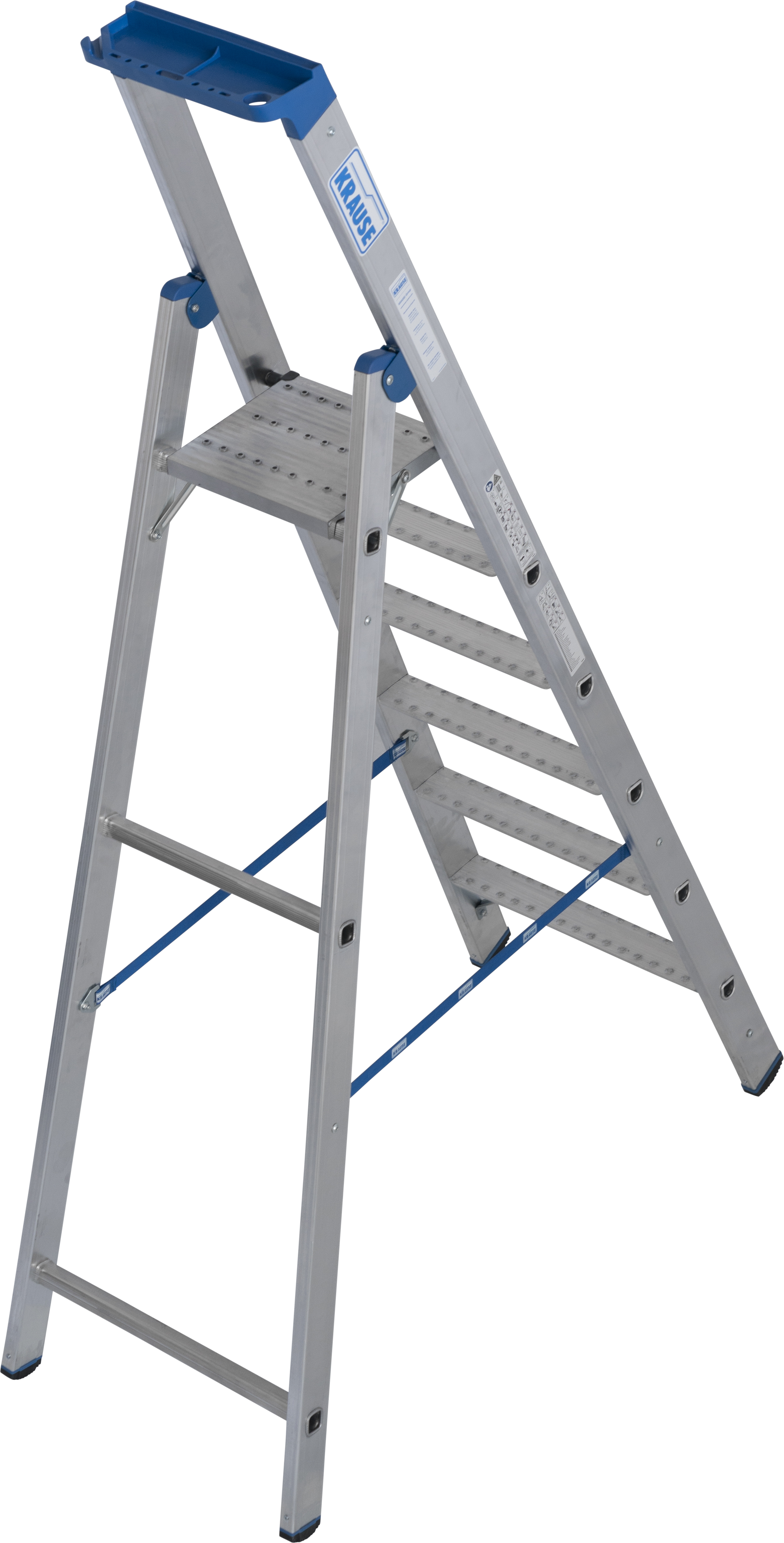 - 260 x 270mm große Alu-Sicherheits-Plattform mit rutschhemmender R13-Profilierung und beidseitigem Plattformheber