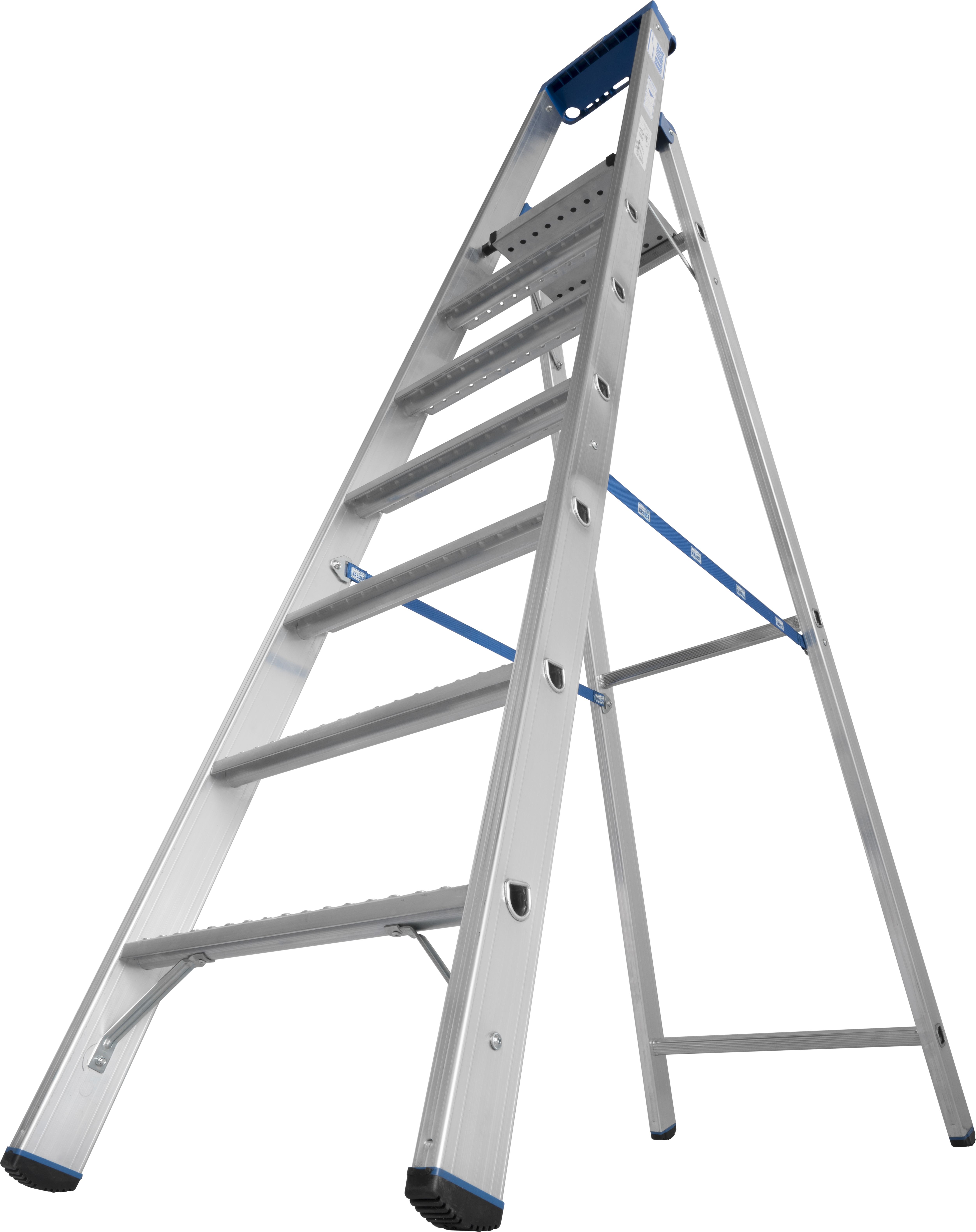 - 260 x 270mm große Alu-Sicherheits-Plattform mit rutschhemmender R13-Profilierung und beidseitigem Plattformheber